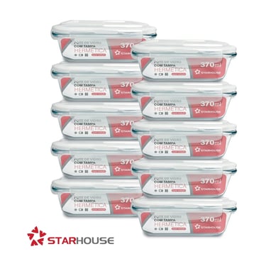Kit 10 Potes Vidro 370ml Hermético
